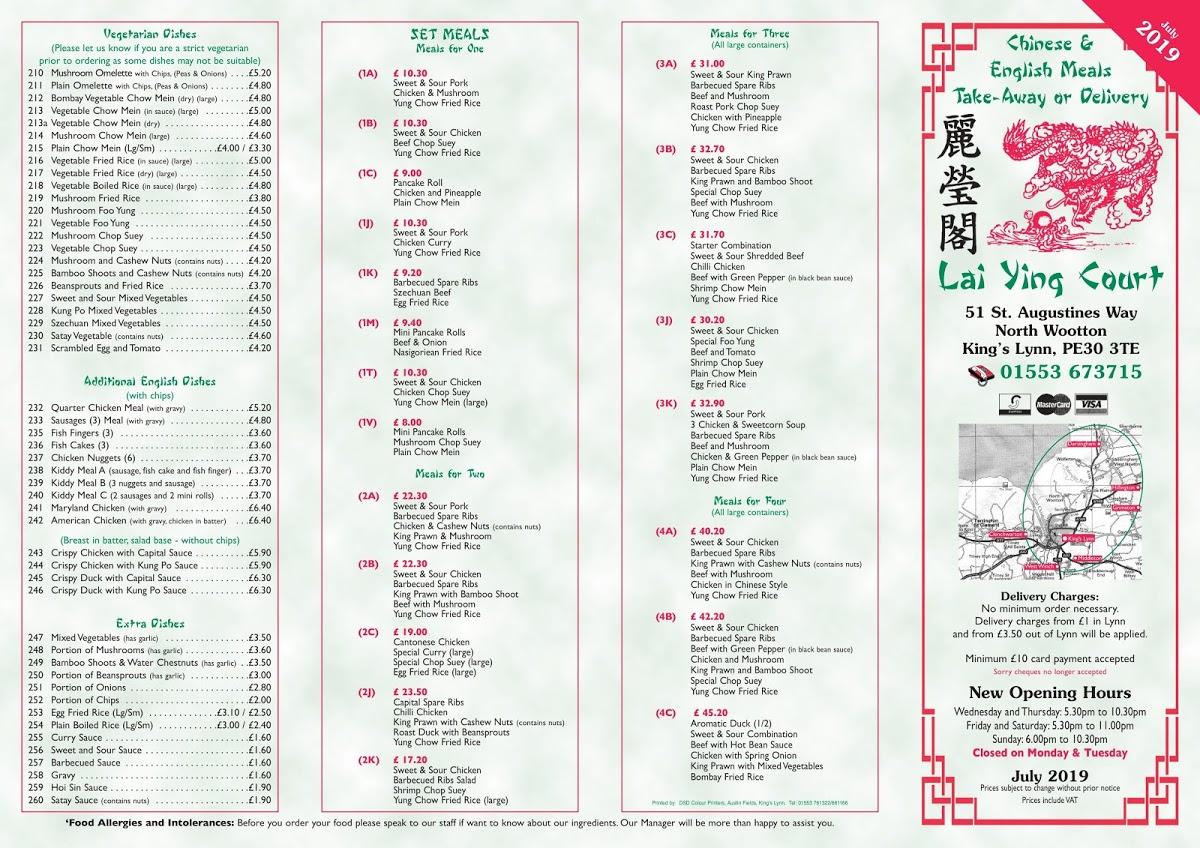 Lai Ying Court Takeaway (Chinese food; website; PE30 3TE Tel: 01553 673715)