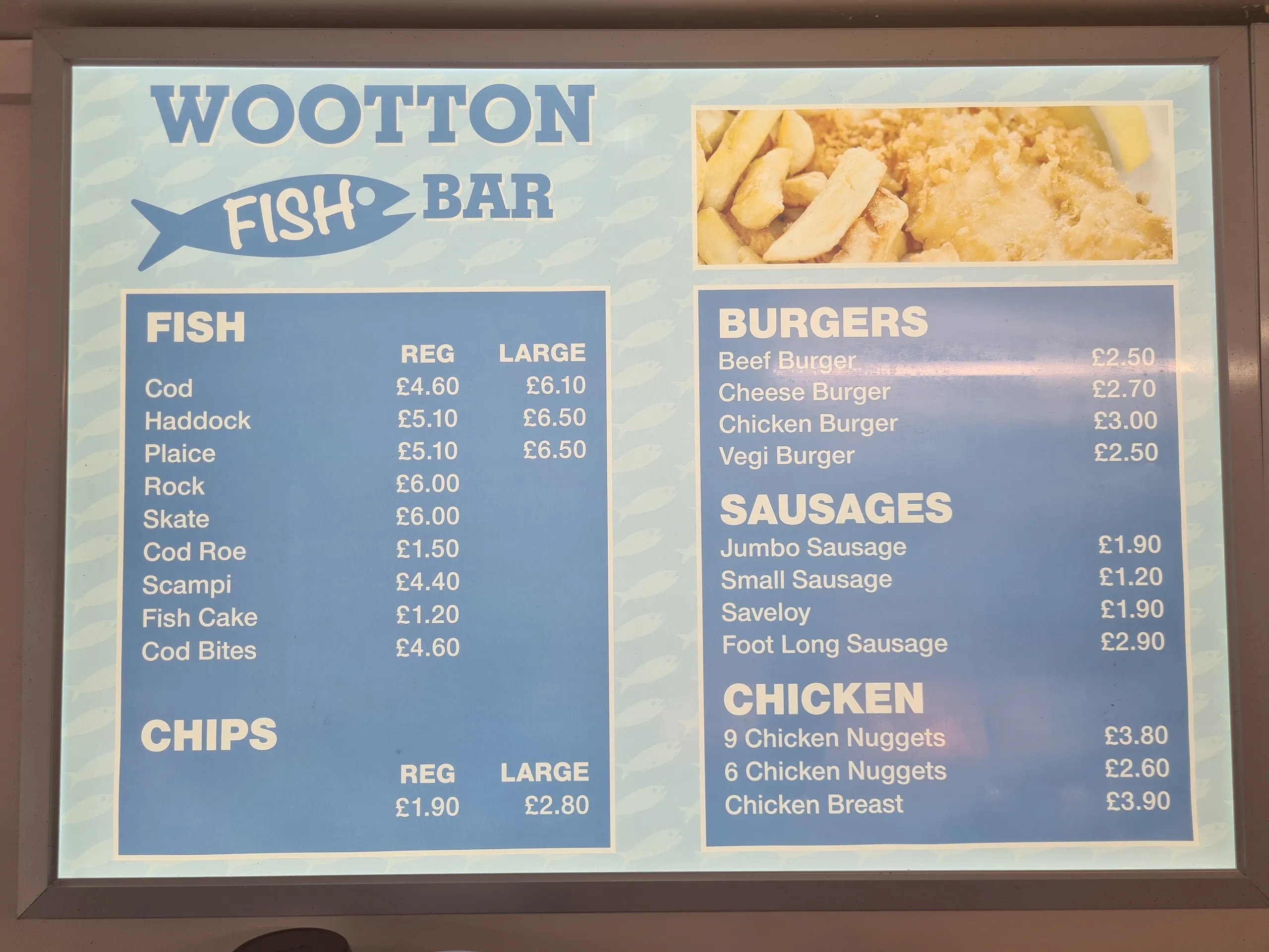 Wootton Fish Bar (Fish and Chips; website; PE39 3NG Tel:01553 675747)