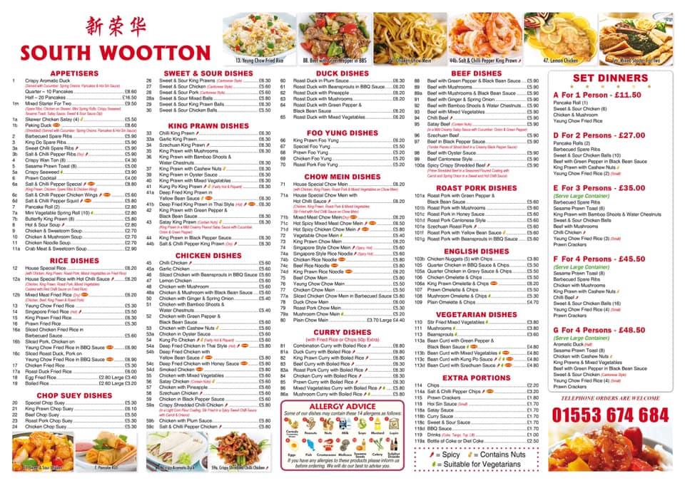 South Wootton Takeaway (Chinese food; PE30 3NG Tel: 01553 674684)